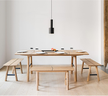 Composed of clean and rounded lines, the Batea Collection includes unique tables with extra functionality.