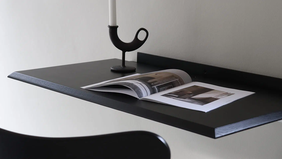 A timeless and discreet folding desk that seamlessly transforms into a decorative shelf in seconds.